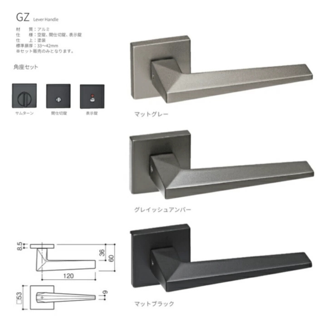 こちらの商品ページでは以下のサイズのレバーハンドルが通販で購入できます。価格は商品構成の選択により、自動計算されて合計金額に表示されますのでご安心ください。